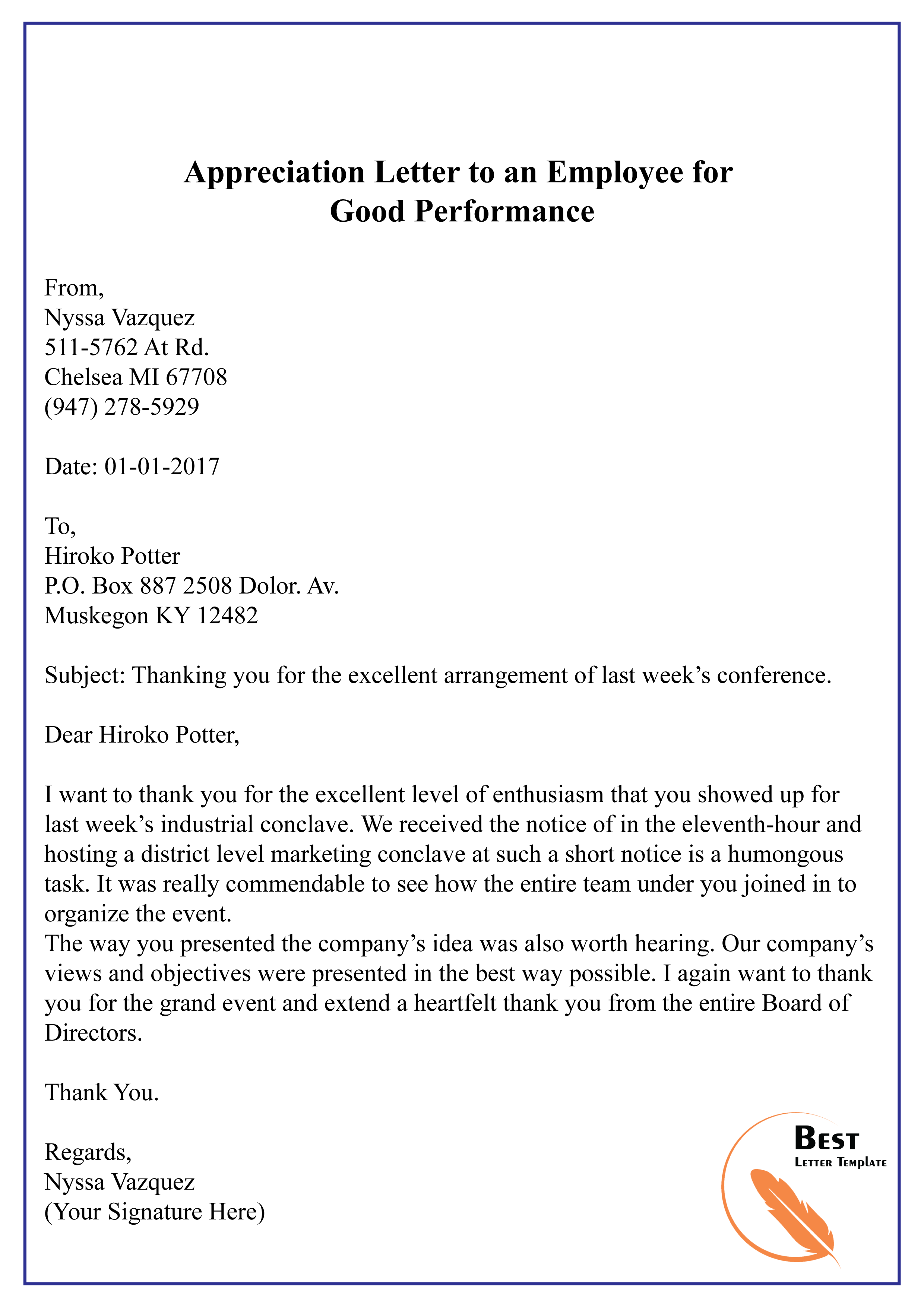 Letter Template For Job Performance Acknowledgm…